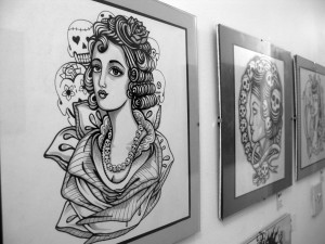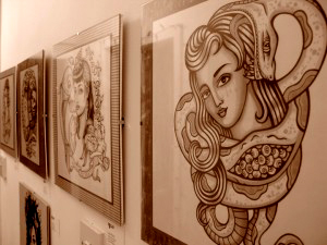 There was some lovely art at the show – I just wish I had taken the time to document it a little better before the first few glasses of mulled wine were guzzled. There are a few beauties from Sarah Barney of Ladyface, and some amazing detail work in Gavin Downie’s work “Mind Games” (photo by Georgina Coburn).